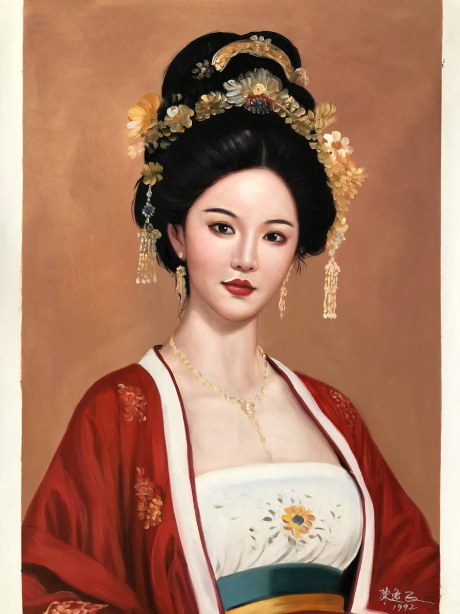 - 油彩 絵画 早期收集 y17 『 寒軍 美女 美人画』手描き布油絵 油畫 旧藏 中国古画 純手描き画 古美術品 時代物 中国古玩 骨董品 925