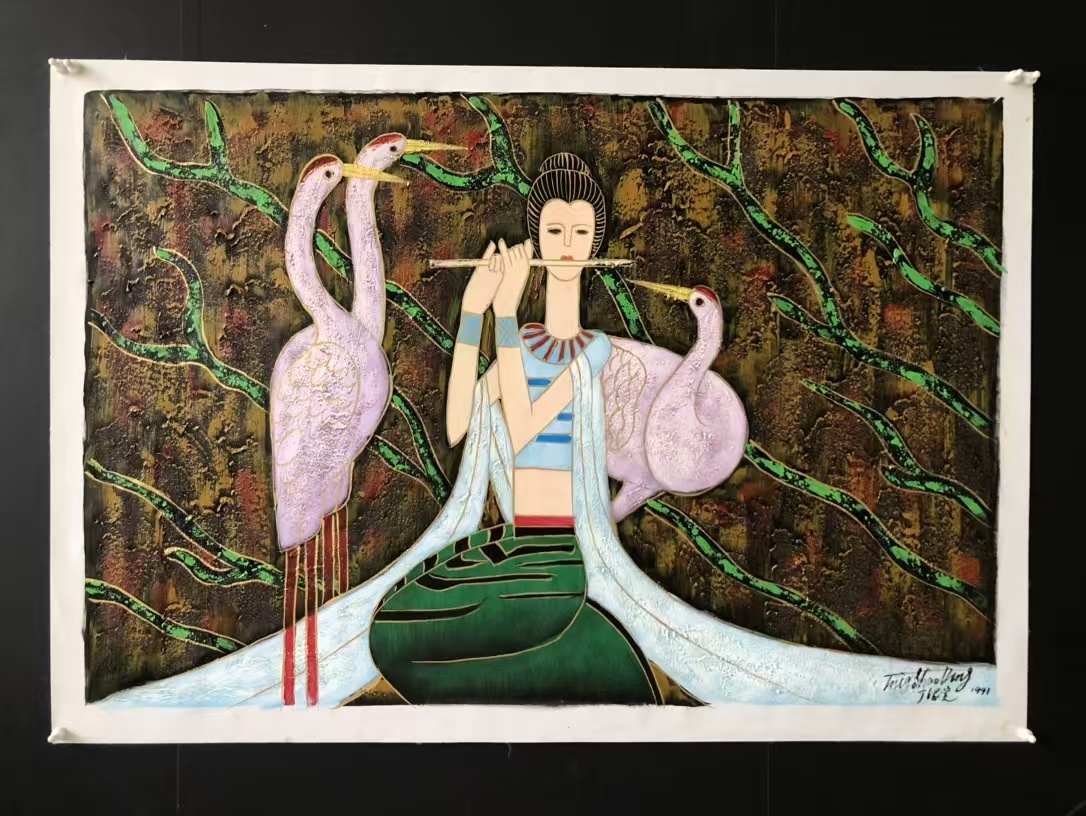- 油彩 絵画 早期收集 y107 『 寒軍 美女 美人画』手描き布油絵 油畫 旧藏 中国古画 純手描き画 古美術品 時代物 中国古玩 骨董品 925