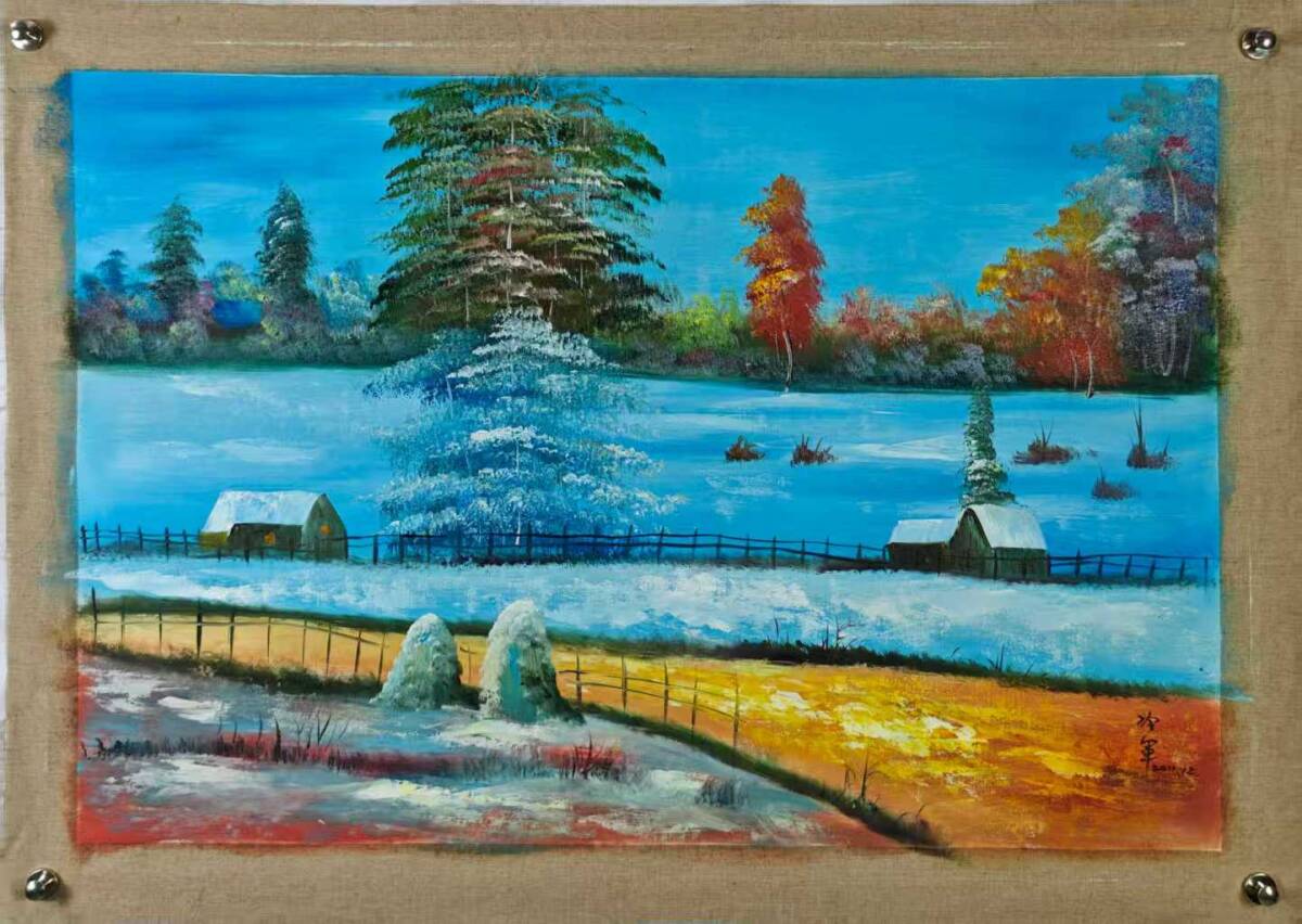 - 油彩 絵画 早期收集 y 【冷軍】 山水 風景 】手描き布油絵 油畫 旧藏 中国古画 純手描き画 古美術品 時代物 中国古玩 骨董品 925