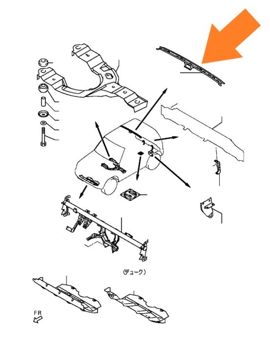 > 三菱 ミツビシ パジェロミニ H53 H58 ターボ 未使用 純正 ルーフ ボウ リヤヘッダー 屋根 天井 B0749-2