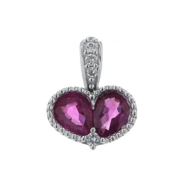 > GSTV K18WG ホワイトゴールド ネックレストップ ルビー 0.40ct ダイヤ 0.03ct ハート 雫 2粒 ミルグレイン【新品仕上済】【zz】【中古】