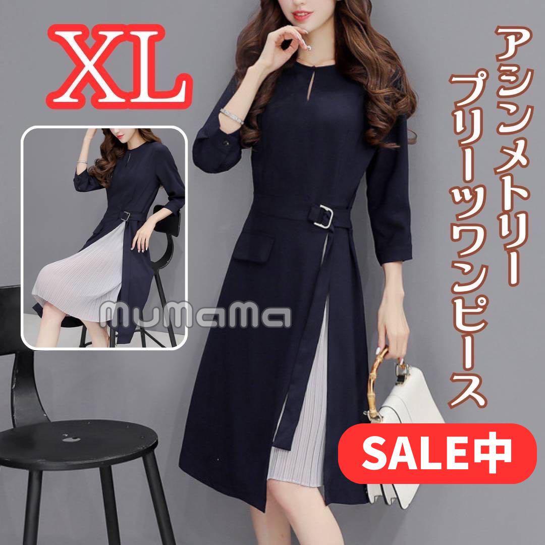 - ☆SALE☆プリーツワンピース 入学式 XL ネイビー ママコーデ フォーマル イベント 二次会 七五三