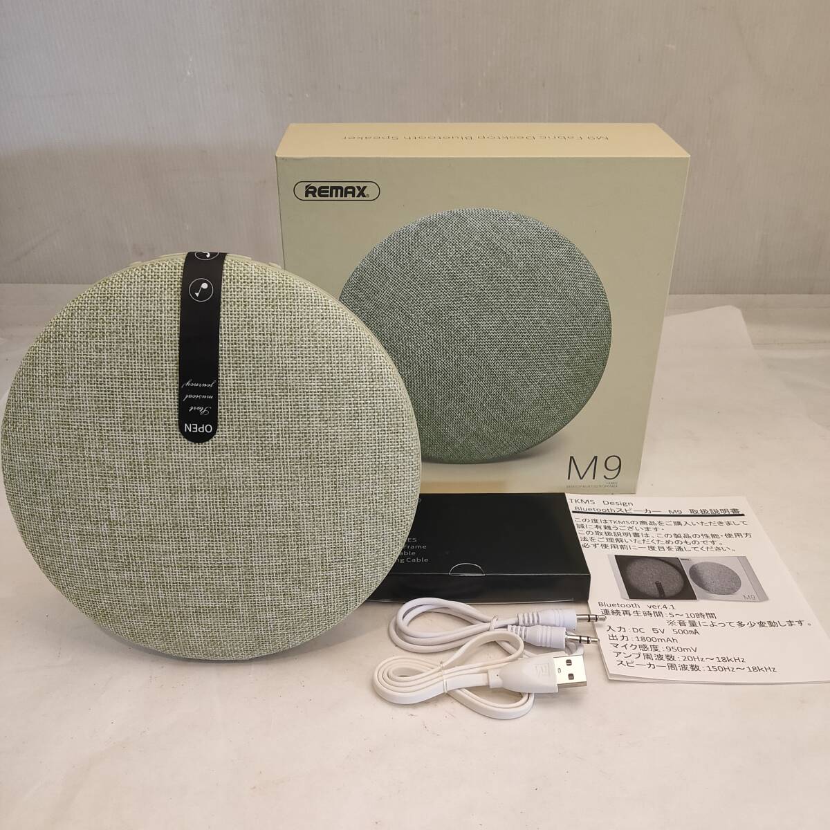 - 092701●REMAX RB-M9 麻布デザイン Bluetooth ワイヤレススピーカー グリーン●