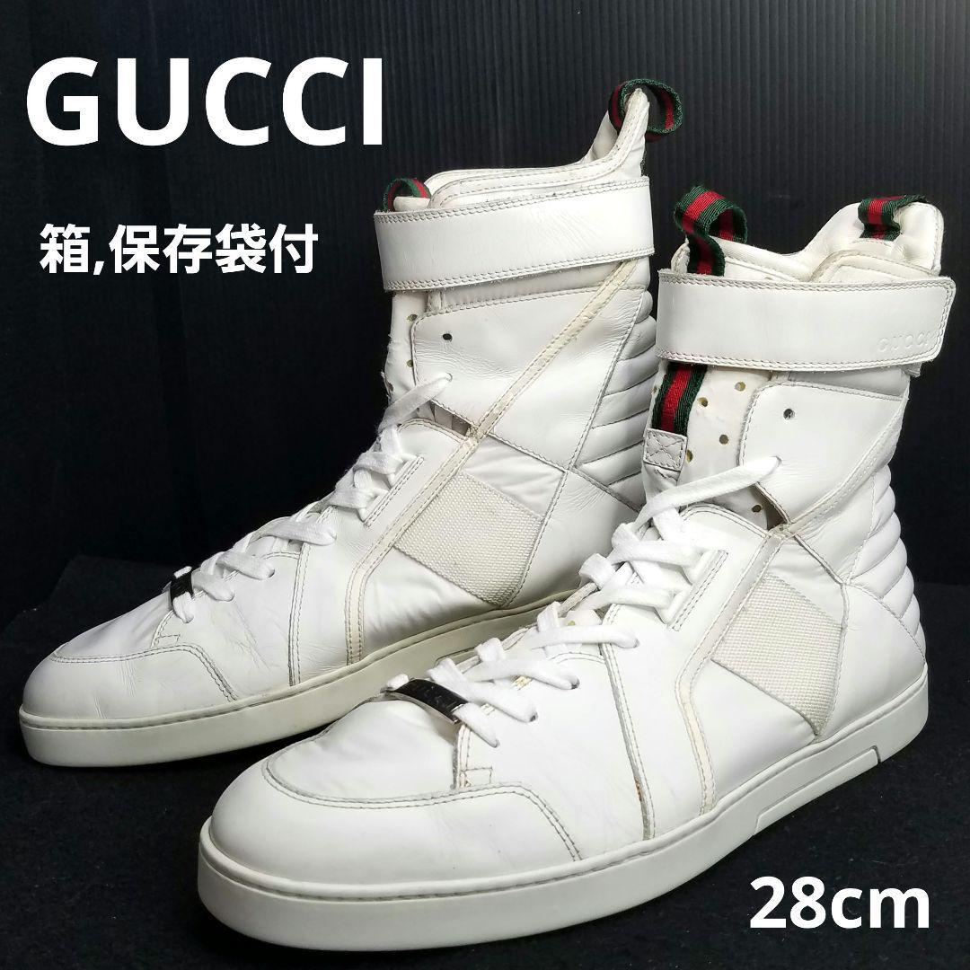 - 送料無料 GUCCI 箱,保存袋付 ハイカット スニーカー 状態良好 グッチ size9G 28.0cm シェリーライン 白 ホワイト イタリア製
