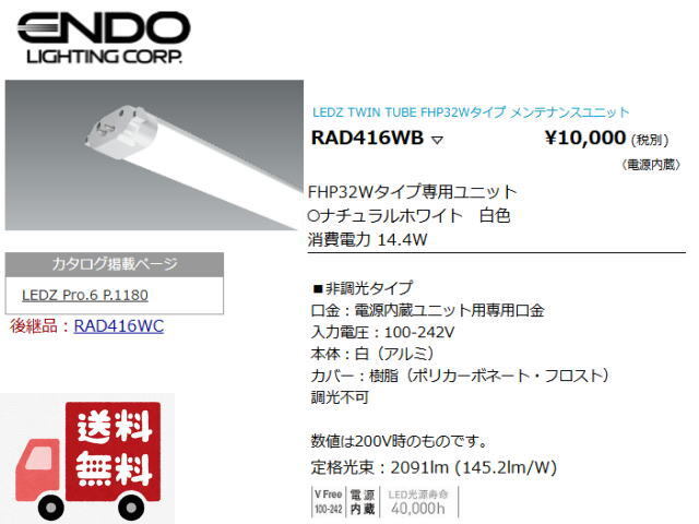 > ◆送料無料◆遠藤照明◆ENDO LEDZ TWIN TUBE FHP32Wタイプ メンテナンスユニット RAD416WB◆新品・在庫品 管BG-1
