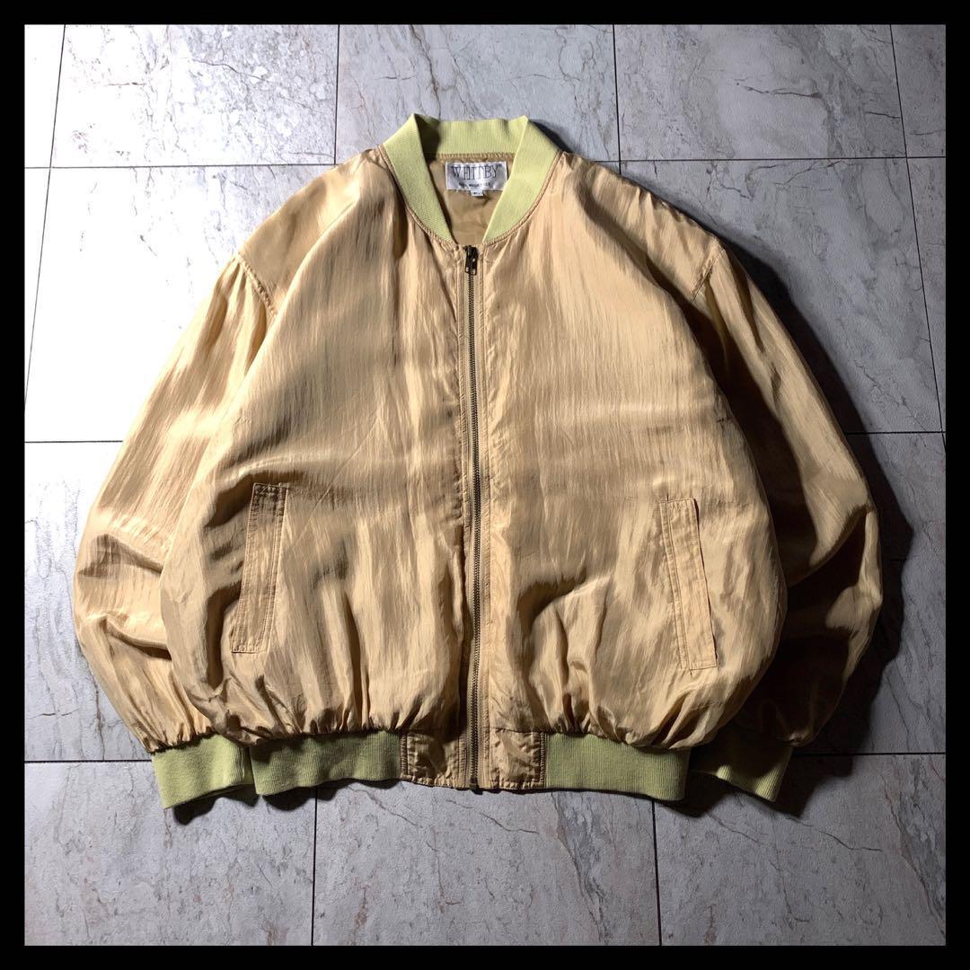 - 90s〜 短丈 シルク スイングトップ ボンバージャケット 黄色 無地 古着