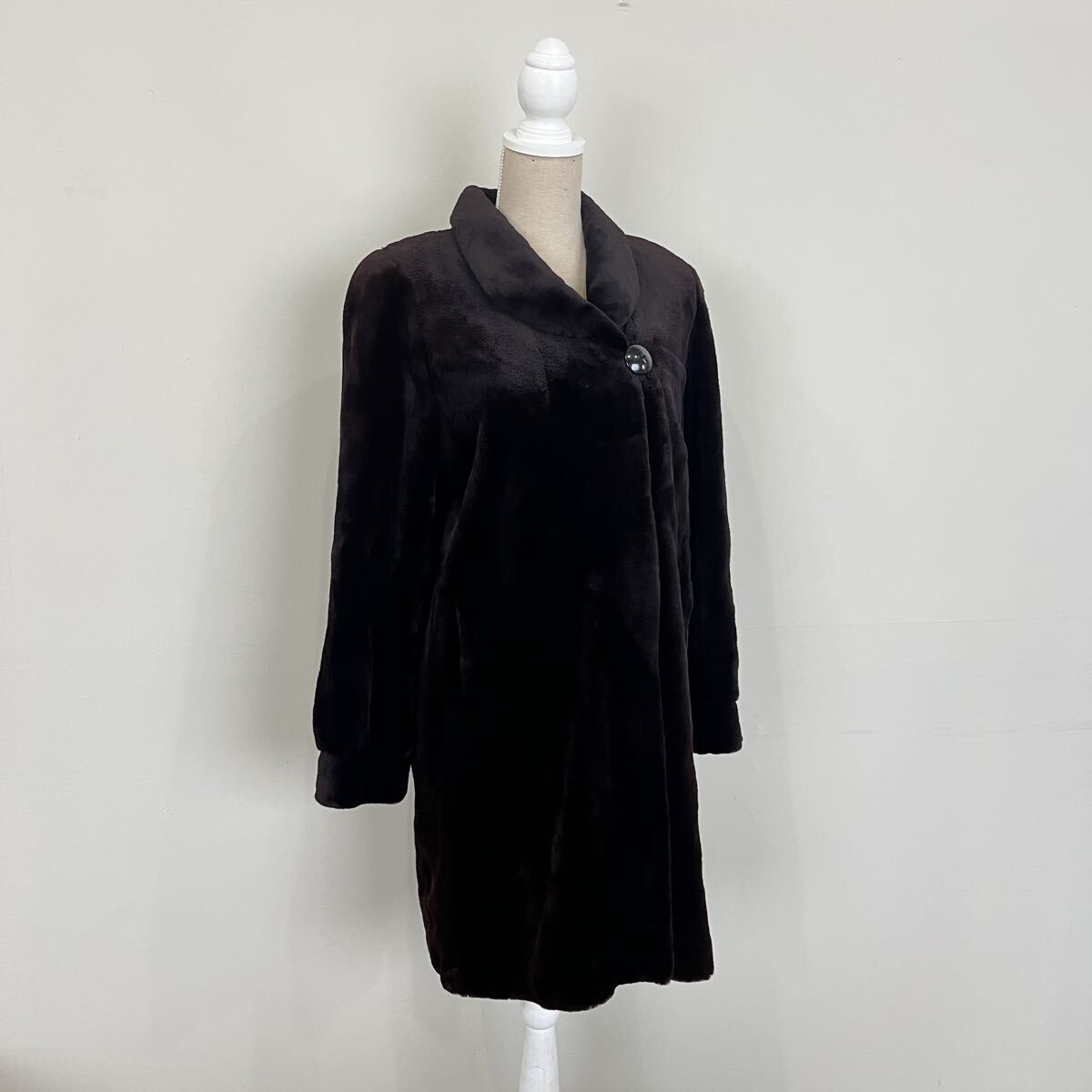 > SAGAMINK サガミンク シェアードミンク セミロングコート ダークブラウン レディース F コート 毛皮 リアルレザー 肩パッドあり F