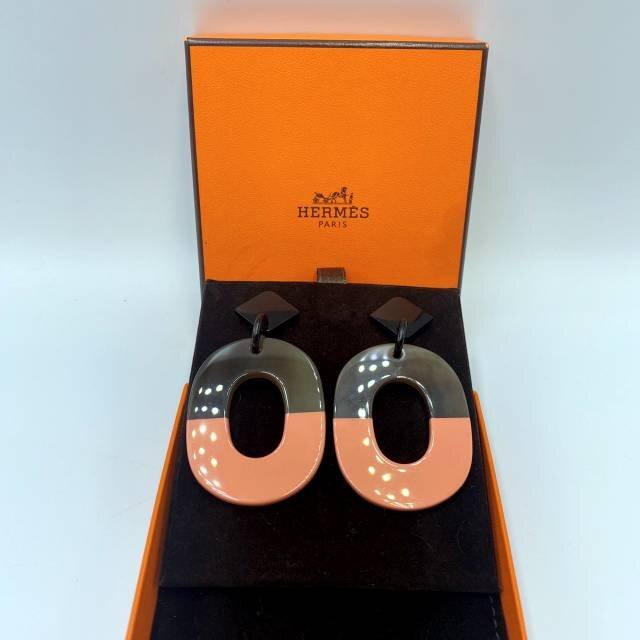 - HERMES エルメス イスム ピアス ブランド アクセサリー スタッドピアス スリング サーモンピンク系 メタル