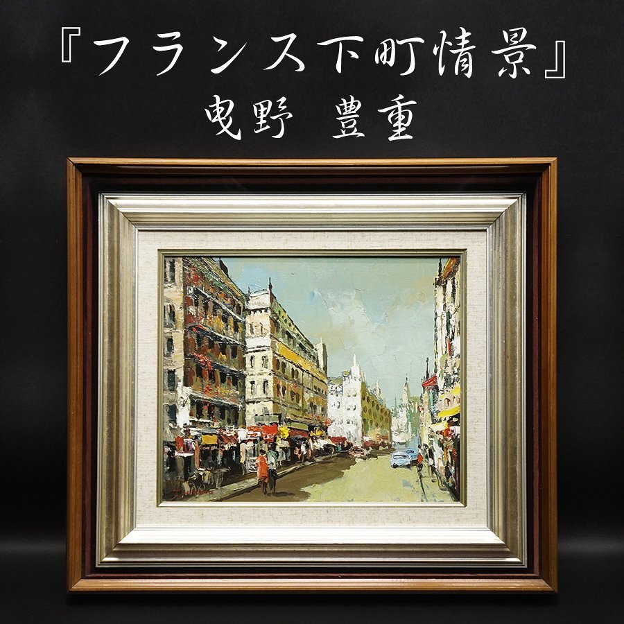 > 曳野豊重『フランス下町情景』8号 油彩 油絵 原画 直筆 風景画 絵画 額装 美術 芸術 アート 裏書サイン有 古美術品 真作保証品