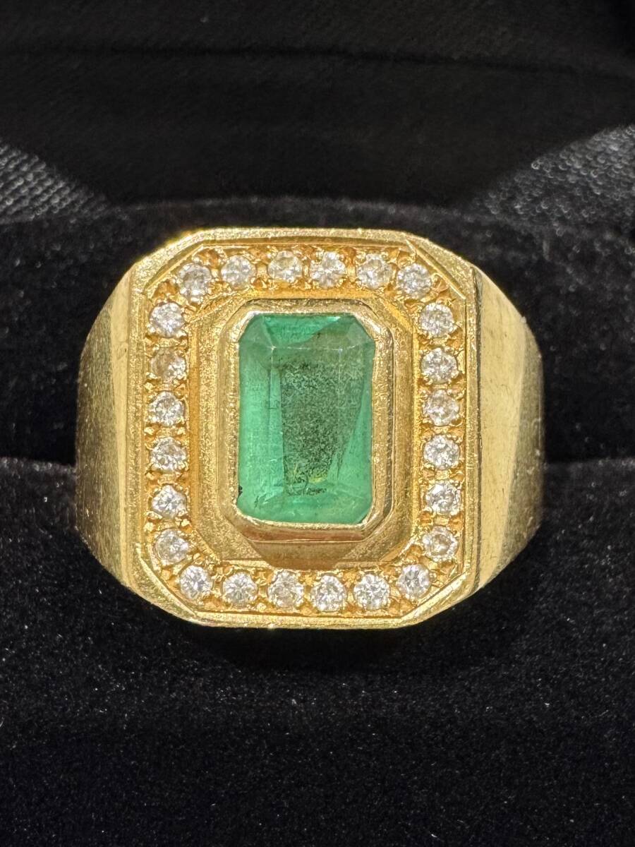 - 【K18 天然エメラルド 天然ダイヤモンド リング】ユニセックス メンズ 17号 K18 E0.89ct D0.24ct 総重量約16.6g 存在感あり 5月