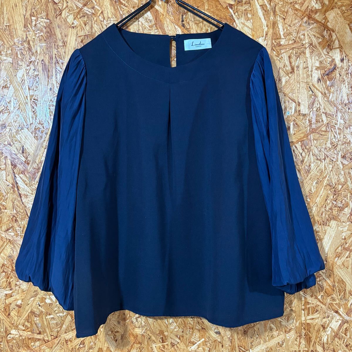 > Limitless Luxury 日本製 トップス カットソー ネイビー 七分袖 生地切替 レディース トップス 4875