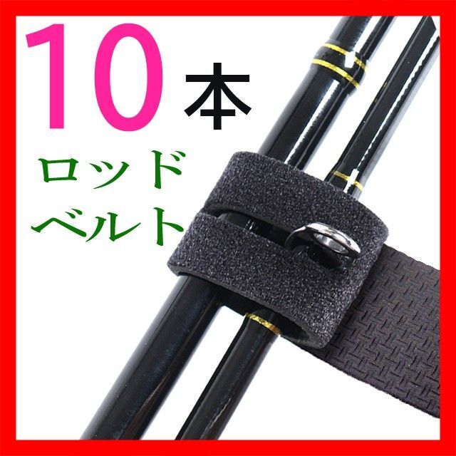 - ロッドベルト10本セットまとめ売り釣り竿ベルト黒ブラックバス エギング 固定バンド