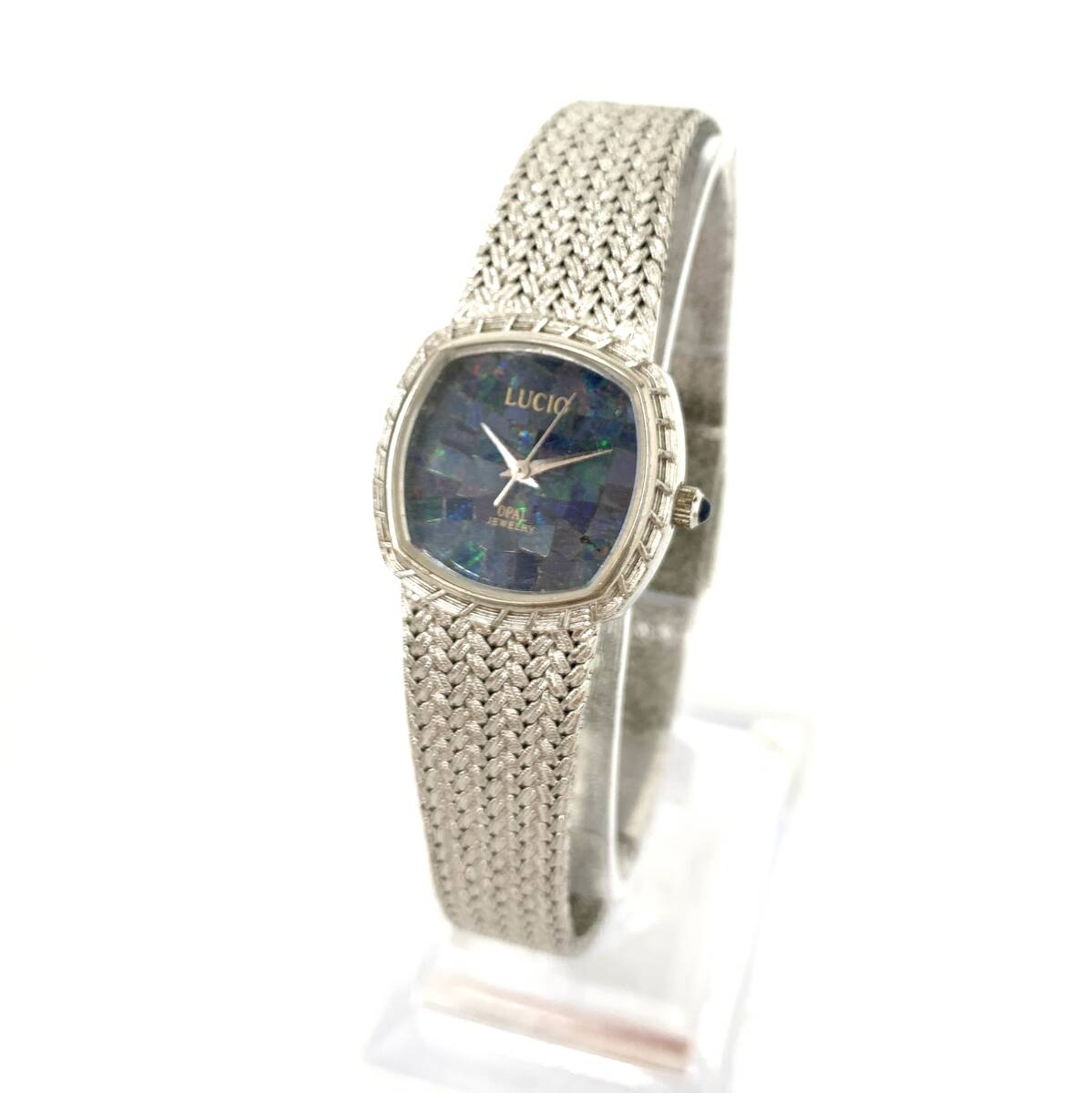 > Z1168△ 1円~! LUCIO ルシオ スクエア 3針 L-110 SS クォーツ オパール文字盤 レディース 腕時計 稼働 動作確認済