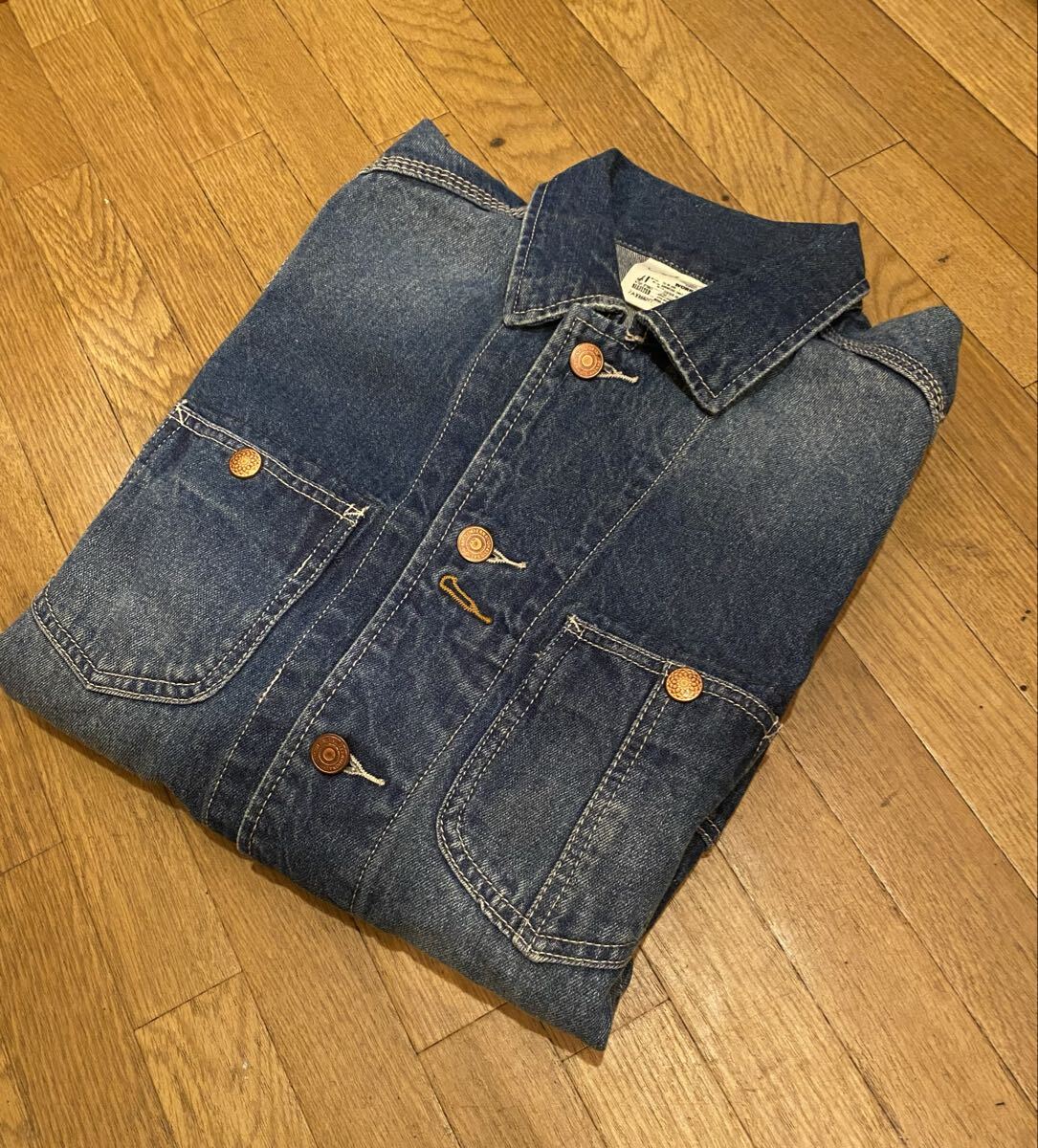 - 激渋デニムジーンズジャケットダンガリーカバーオールワークvintagewash インディゴgジャンヒッコリーストライプ