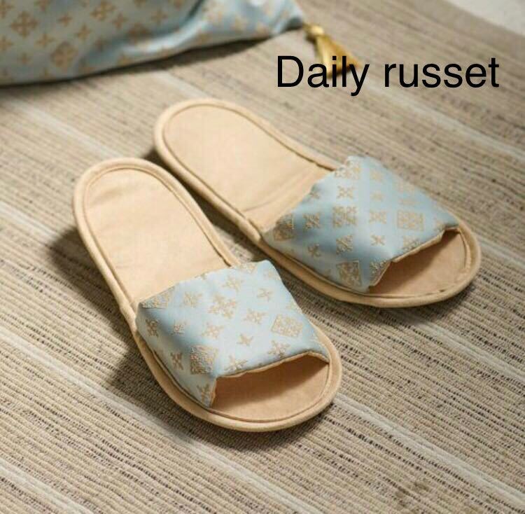 - 残りわずか Daily russed 【新品】二重織りCスリッパ ブルー デイリーラシット コンパクトスリッパ 携帯スリッパ 室内ばき 収納巾着付