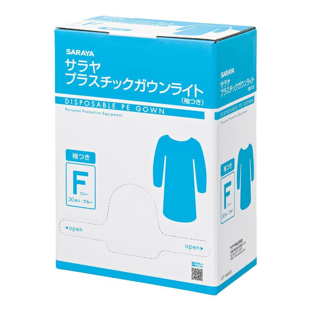 - サラヤ プラスチックガウンライト ゴム袖式 ブルー フリーサイズ 30枚 使い捨