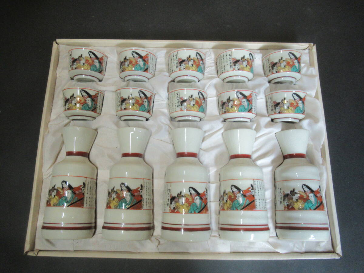 - 【広吉堂】九谷 酒器セット 百人一首 猪口 徳利 美品