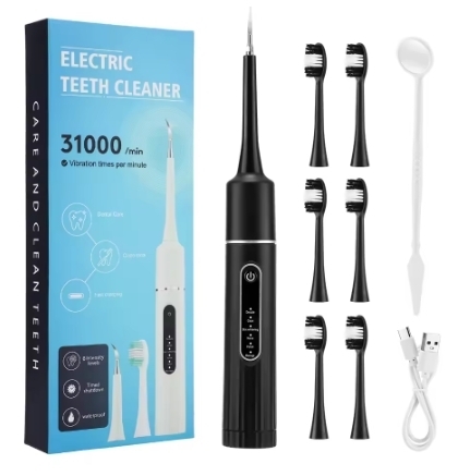 > 増量中 最新ver 毎分31,000回 超音波スケーラー 超音波ブラシ USB充電式 9点セット 防水 音波 電動歯ブラシ 充電 替えブラシ付き