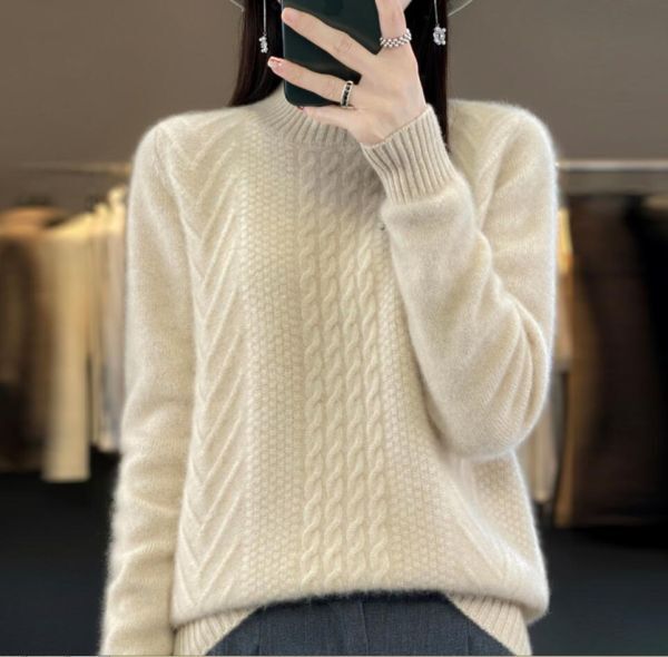 - 新入荷*秋冬 上品 セーター ウール混 ハイネック レディース 長袖 ニットトップス ケーブル編み 通勤 大人 きれいめ セーター*9色選ぶ
