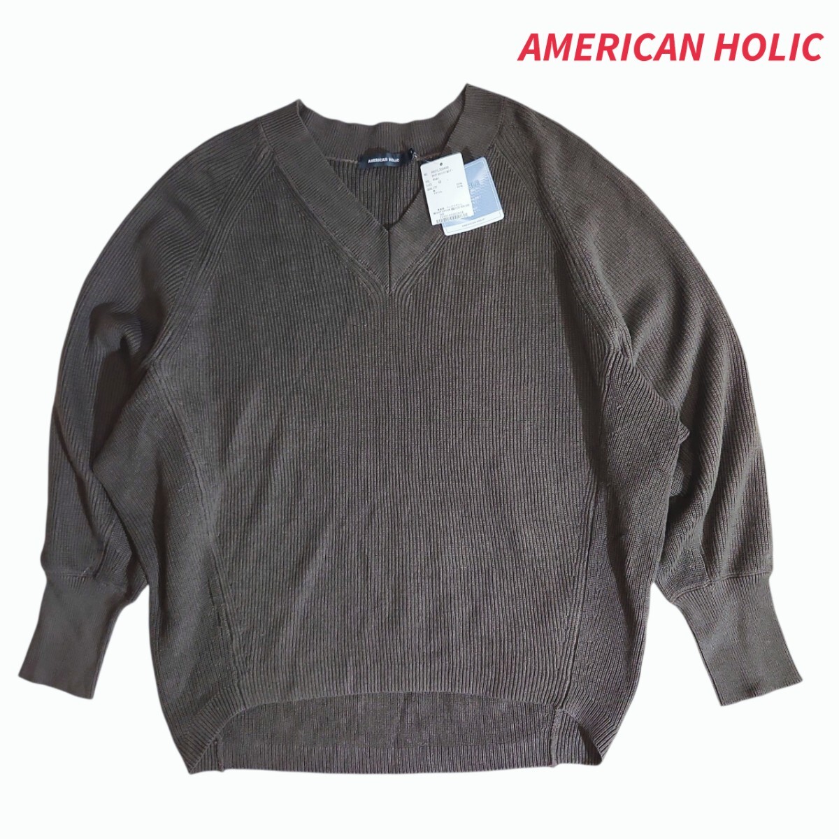 > 未使用 AMERICAN HOLIC リブ編み ドルマンスリーブ ニット・セーター 表記サイズM ゆったりデザイン ダークブラウン 69006