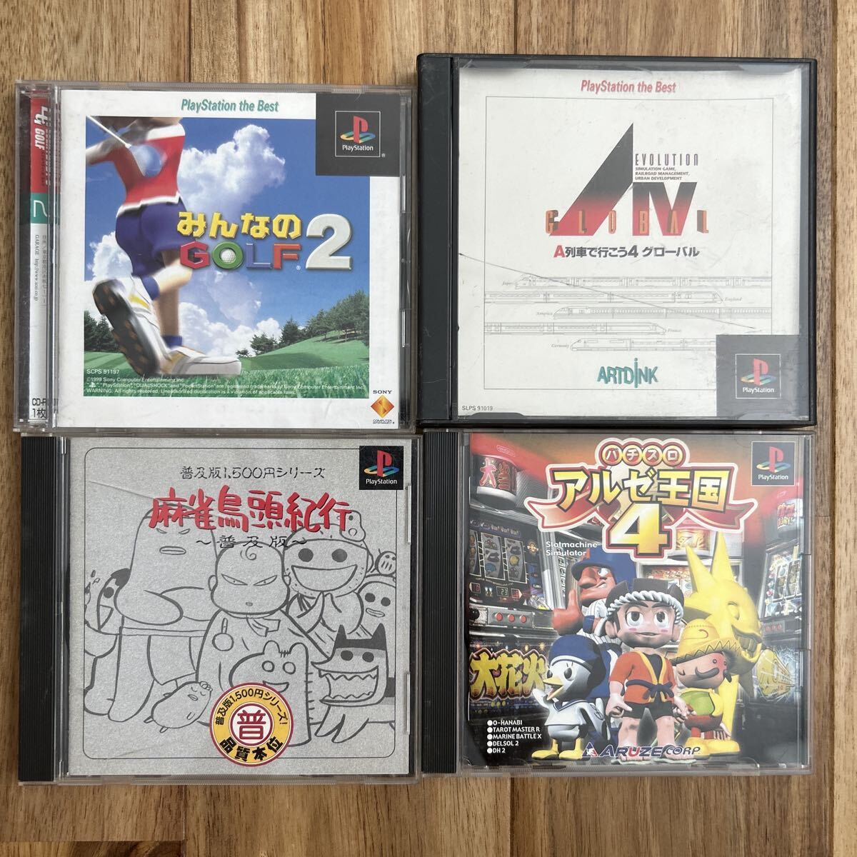 - ●2未チェックジャンク品 パチスロ アルゼ王国4 麻雀鳥頭紀行 普及版 みんなのGOLF2 A列車で行こう4 プレイステーション