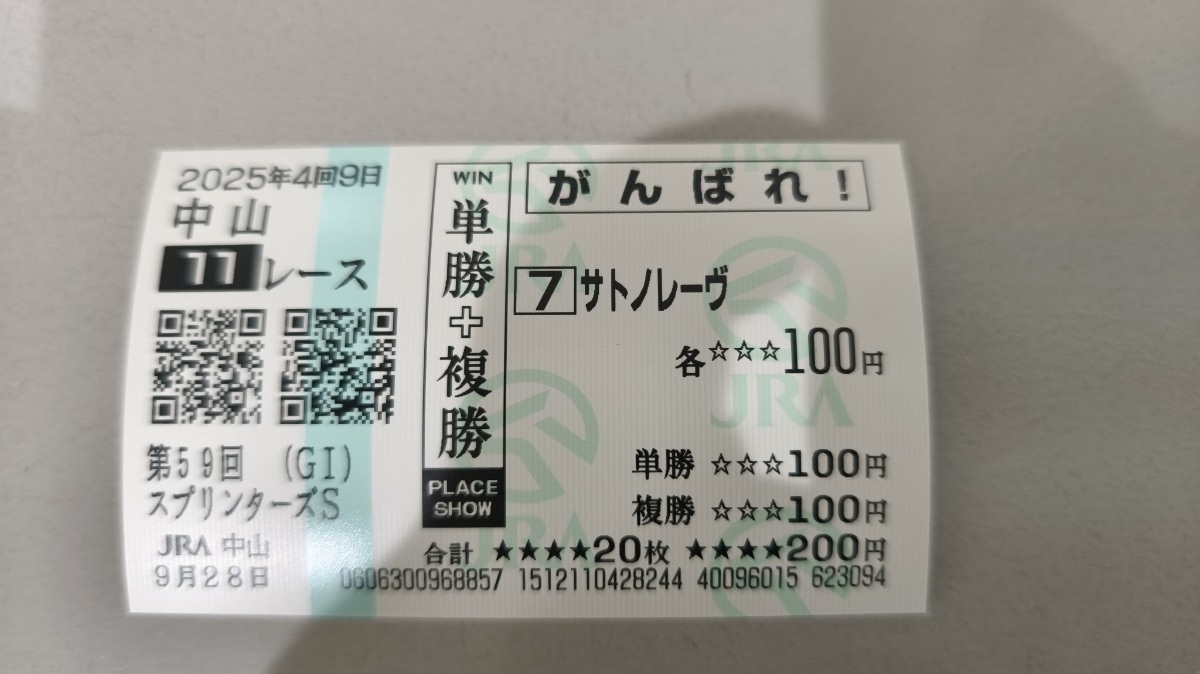 - スプリンターズステークス2025 サトノレーヴ がんばれ馬券 匿名発送