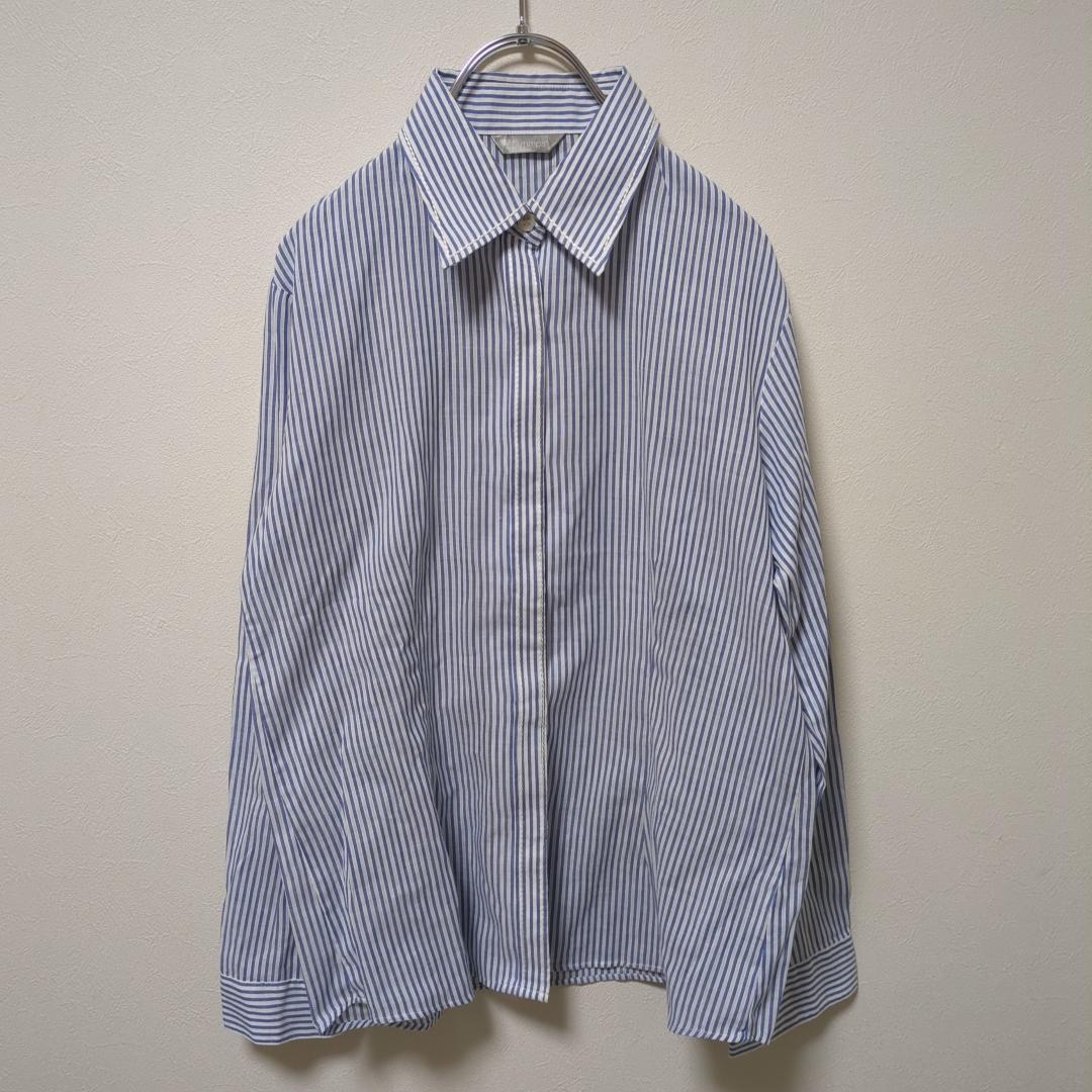 - 【美品】trammps(ONE)ストライプシャツ*長袖*シンプル*ステッチ*青白