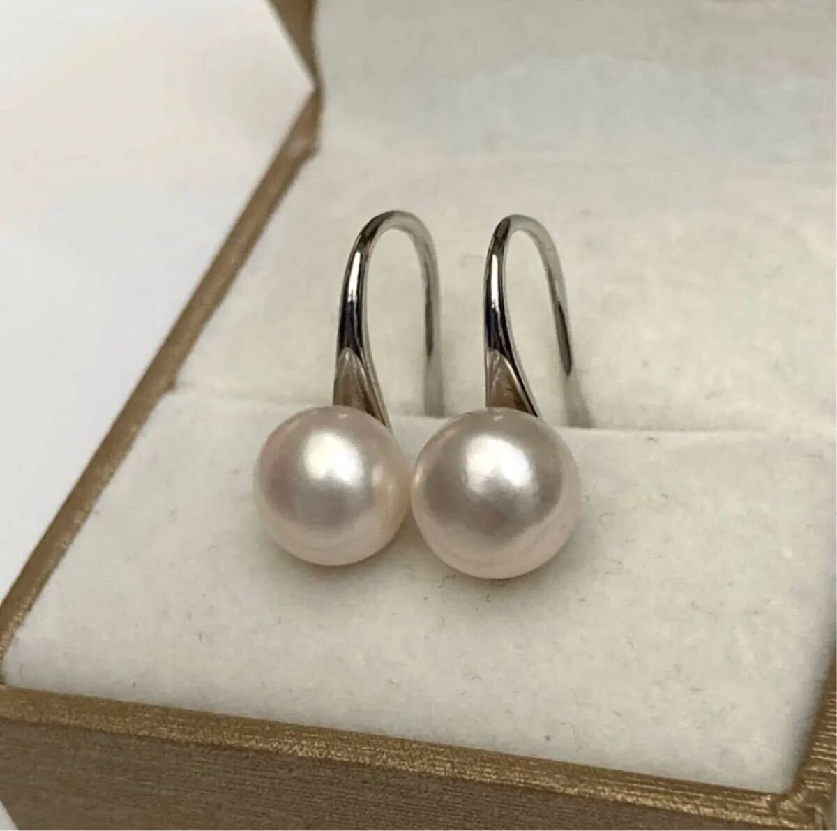 - 天然真珠ピアス パール クリーム系ホワイト k18GP 8-8.5mm アレルギー対策 25a