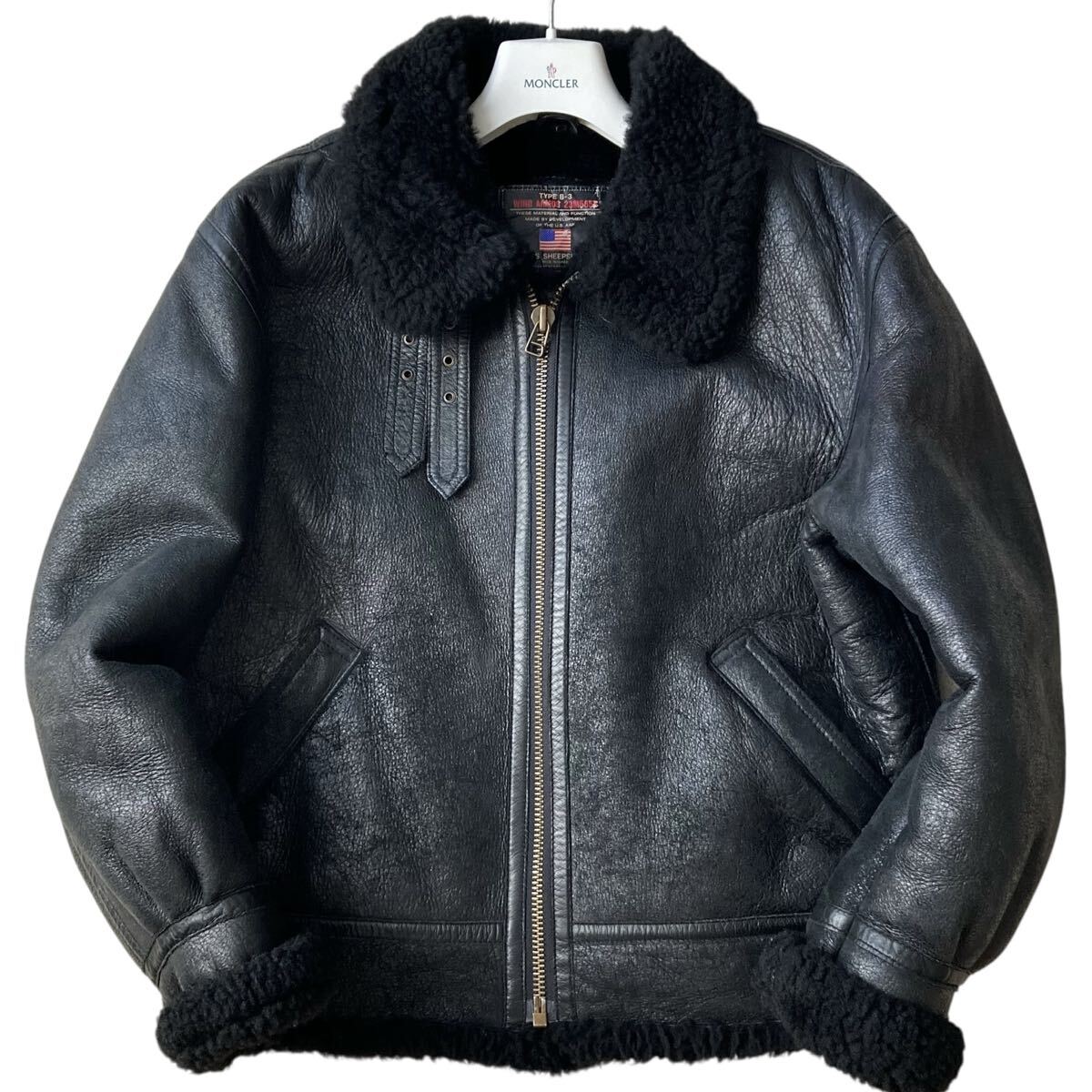 - Lサイズ WIND ARMOR ウィンドアーマー オールブラック B3 ムートン フライトジャケット ブルゾン ボンバー シープスキン 羊革 メンズ 極暖