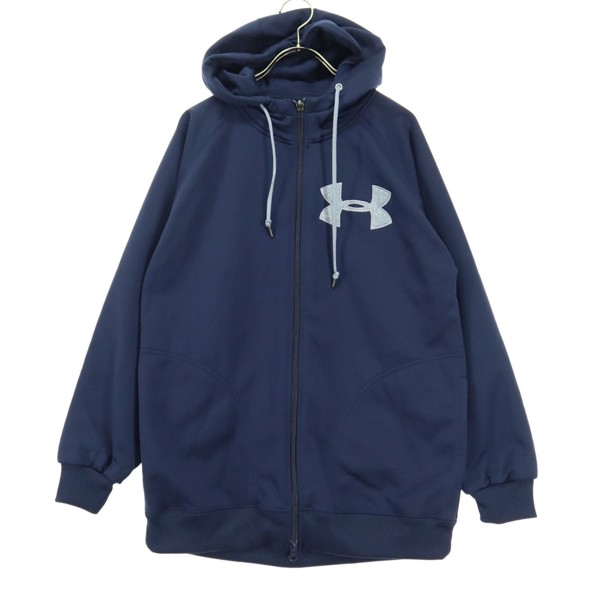 美品 UNDER ARMOUR アンダーアーマー ワンポイントロゴ 長袖 ジップパーカー SM ネイビー メンズ