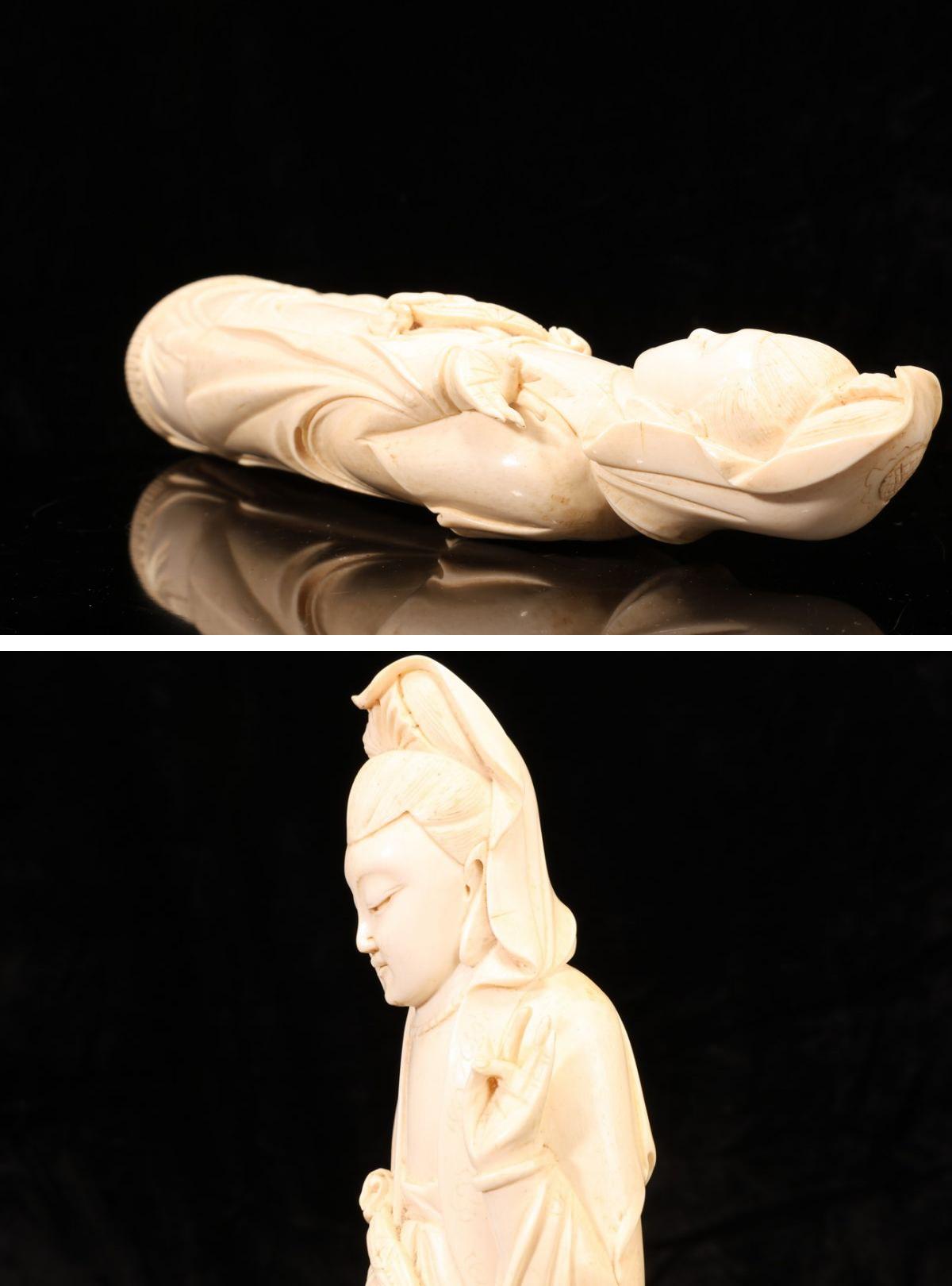 - 【珍品堂】1円から Y61-V10 天然素材 特殊白材 仏像 如意輪 観音像 細密彫刻 重490g 菩薩 極上 希少 縁起物 東洋彫刻 骨董品 古美術