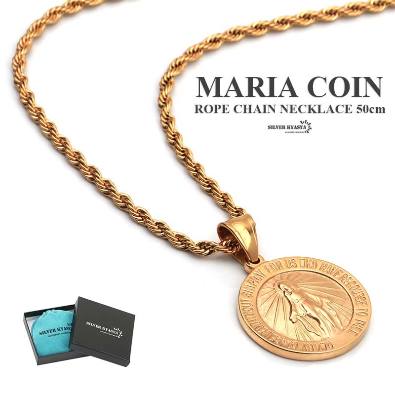 - 18k gp 奇跡のメダイ ネックレス ゴールド 18金 仕上げ 聖母 コインネックレス ロープチェーン 50cm 専用BOX付属