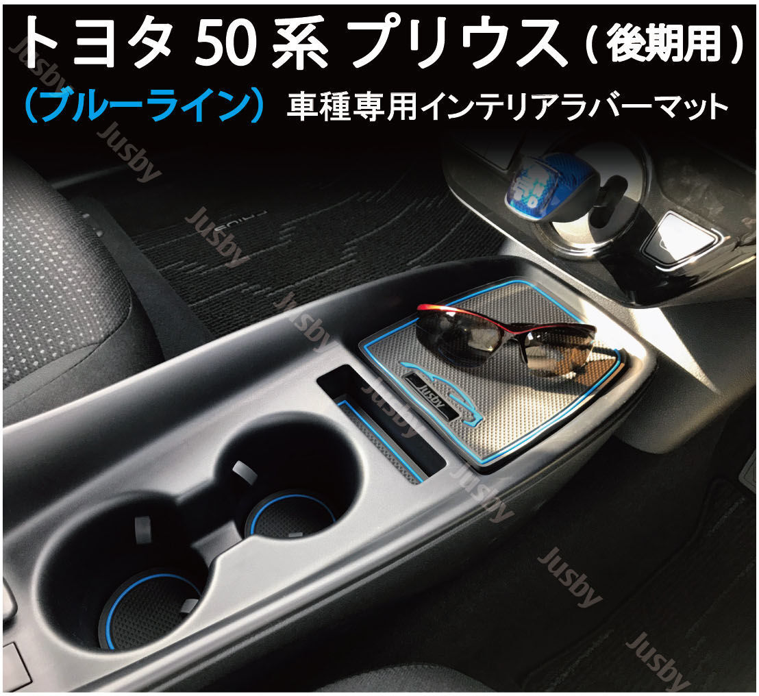 - トヨタ 50系プリウス(後期)専用 インテリアラバーマット(青色・ブルー)ドアポケットマット コンソールフロアマット カーパーツ
