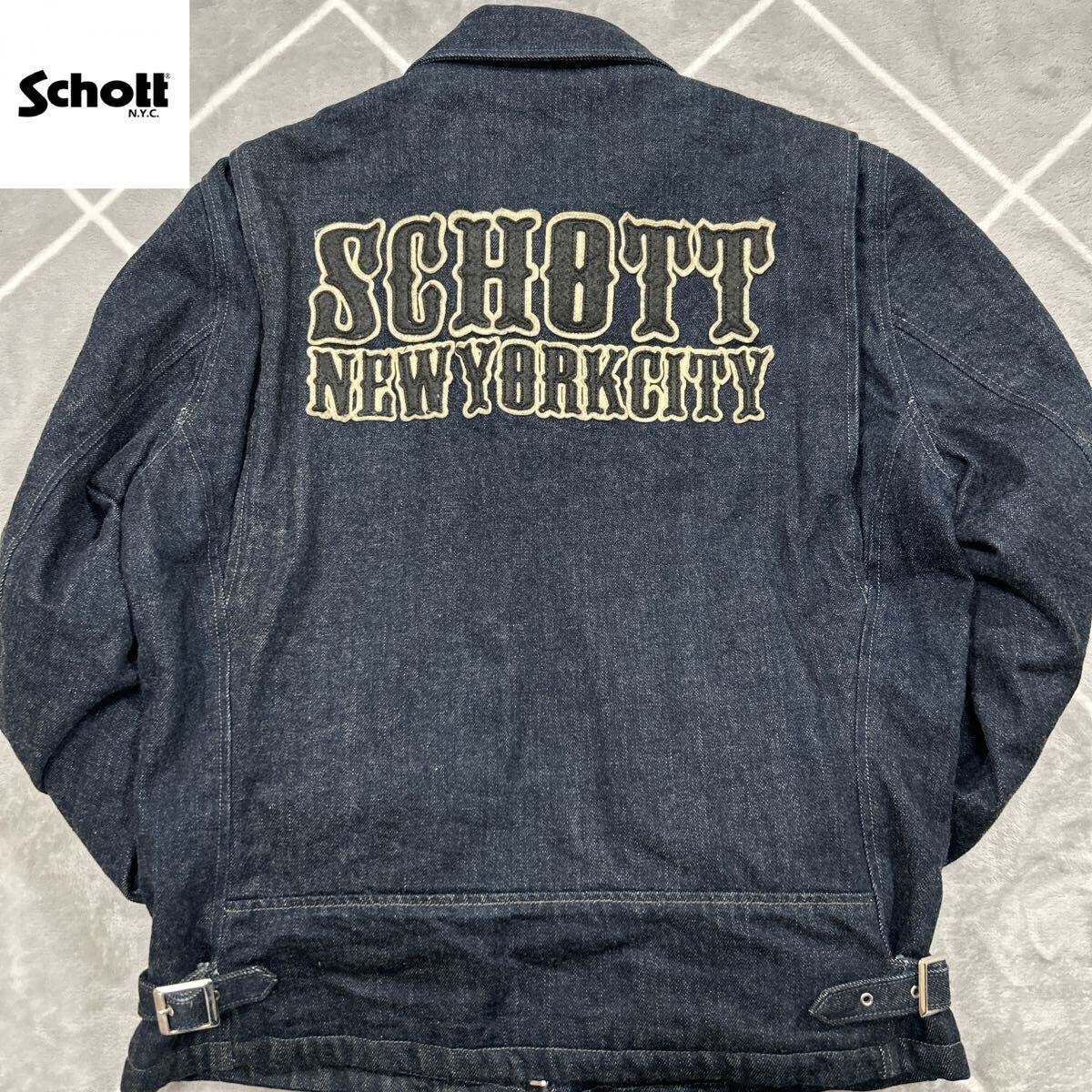 > 【極美品Lsize】上野商会 最高傑作 SCHOTT ショット Gジャン デニムジャケット インディゴ コット SCHOTT刺繍 バックロゴ【極上品】激レア