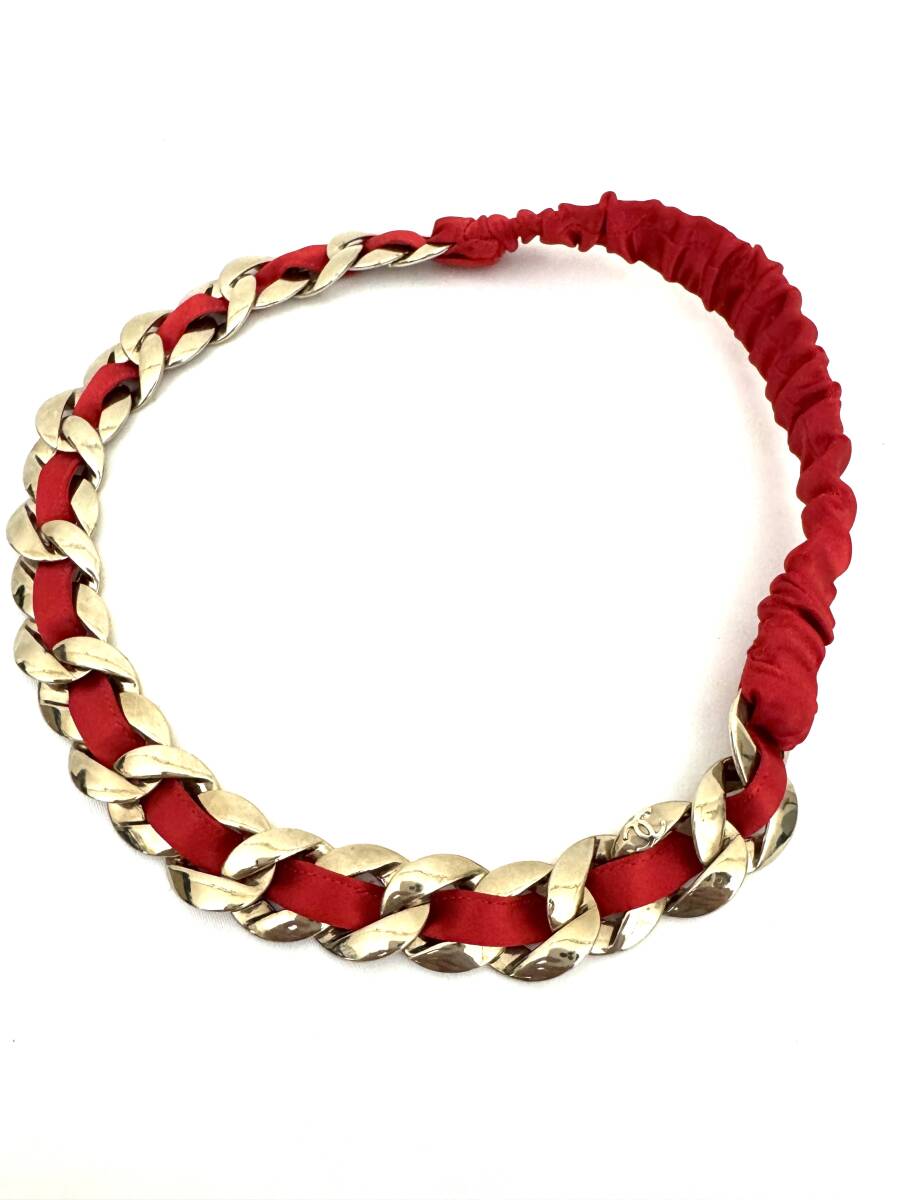 - 7I2810【本物保証】シャネル ヘアバンド カチューシャ レッド 喜平 チェーン ゴールド ココマーク 08C CHANEL