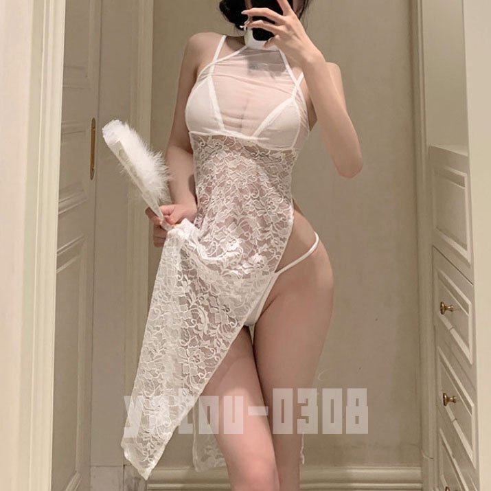 - K203A コスプレウェア 透け透け レース 両サイド スリット チャイナドレス レースクイーン セクシーランジェリー ナイトウェア