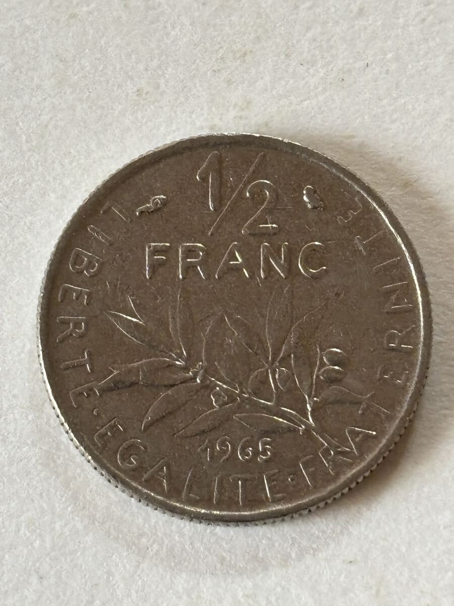 - 1965年 フランス 1/2 FRAN 硬貨 外国コイン 銀貨 1枚のみ