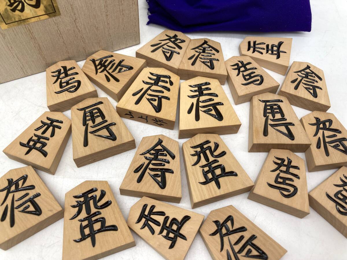 - 京都6★ 御将棋駒 山上作 黄揚黒彫 41枚 木箱入り 布 記念品