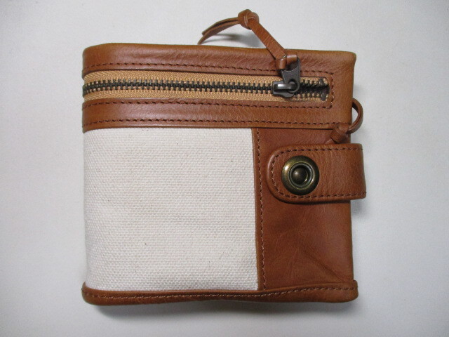 - 訳アリ 新品 財布 メンズ 二つ折り GOISE ブランド 本革 牛革 コットン キャンバス 多機能 ブラウン