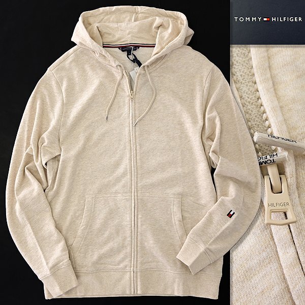 > 新品 1.2万 トミーヒルフィガー 裏毛 スウェット フルジップ パーカー M(L位) ベージュ 【I40046】 秋冬 メンズ フード シャツ フーディー