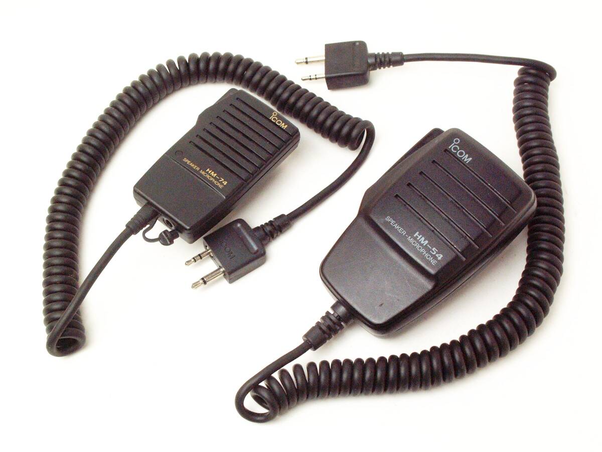- ICOM アイコム ハンディ機用 スピーカーマイクロフォン HM-54 + HM-74 (2本まとめ/実用中古/通電/動作確認済)
