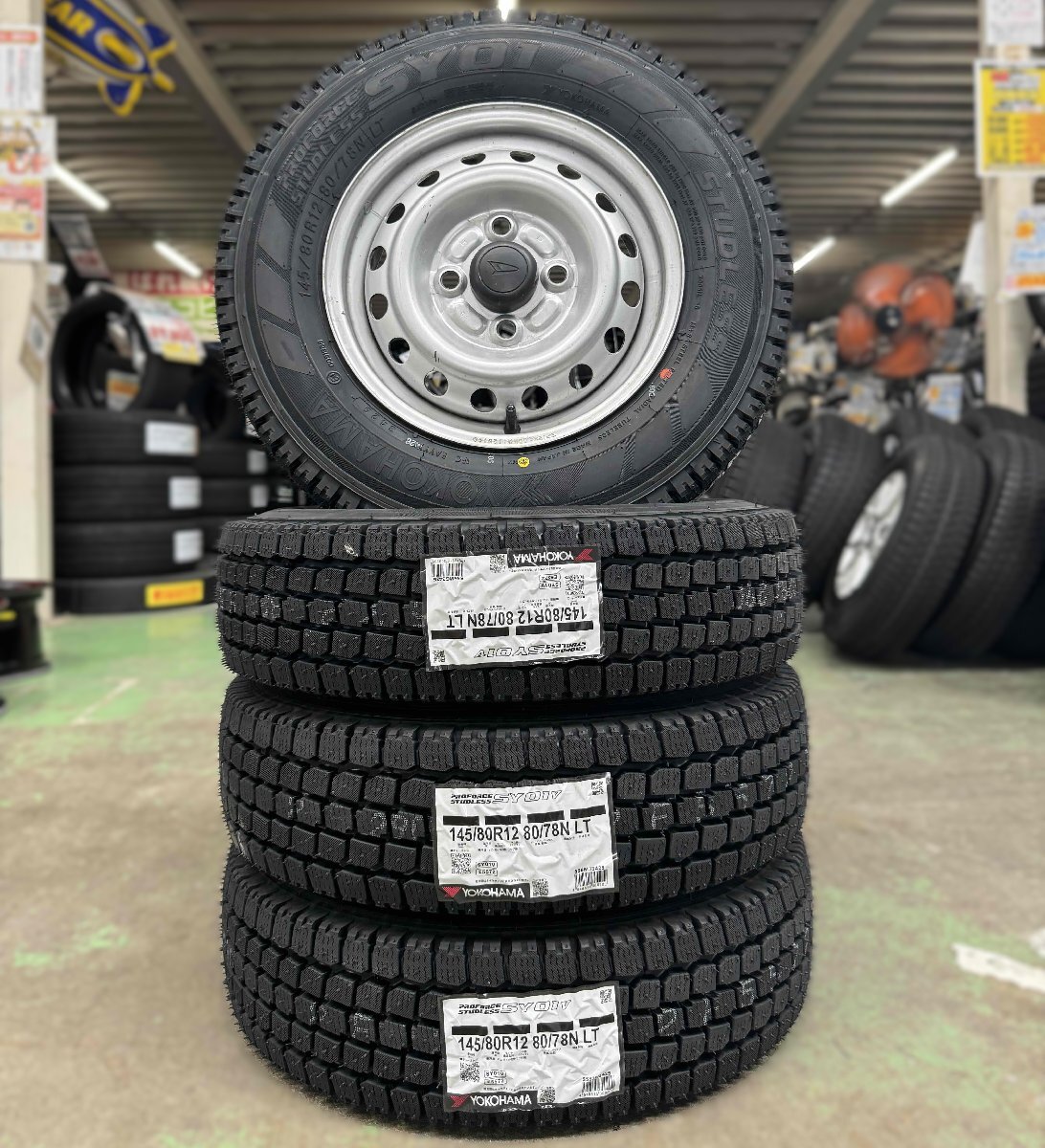 - ハイゼット etc. [新品スタッドレス] ヨコハマ SY01 145/80R12 80/78N 2025年製 + [中古] ハイゼットカーゴ純正 12インチ 4本セット!