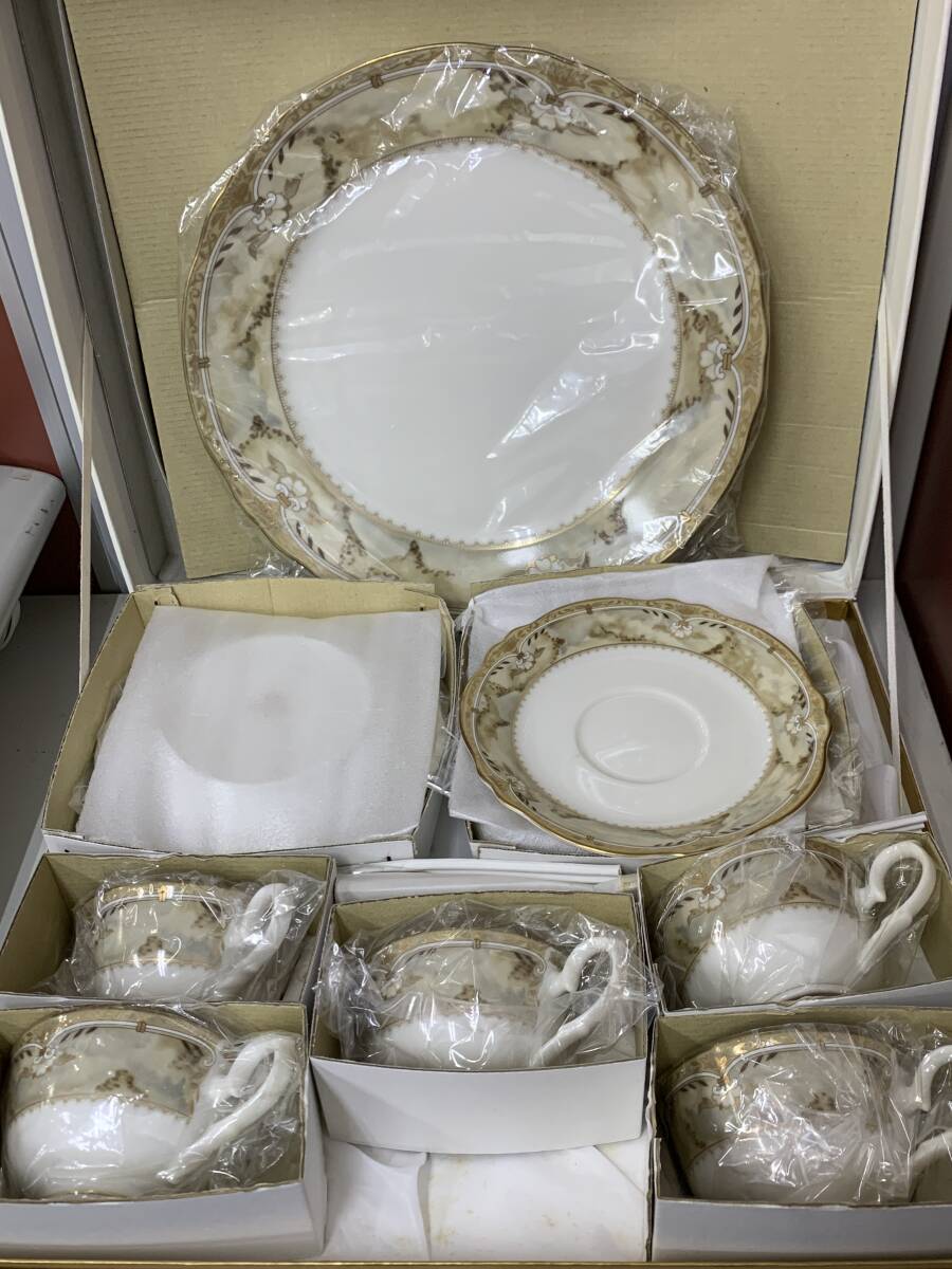 > N2386 ナルミ ティータイムセット5客 大皿 金彩 豪華 カップ ソーサー コーヒーカップ NARUMI プレート 5客