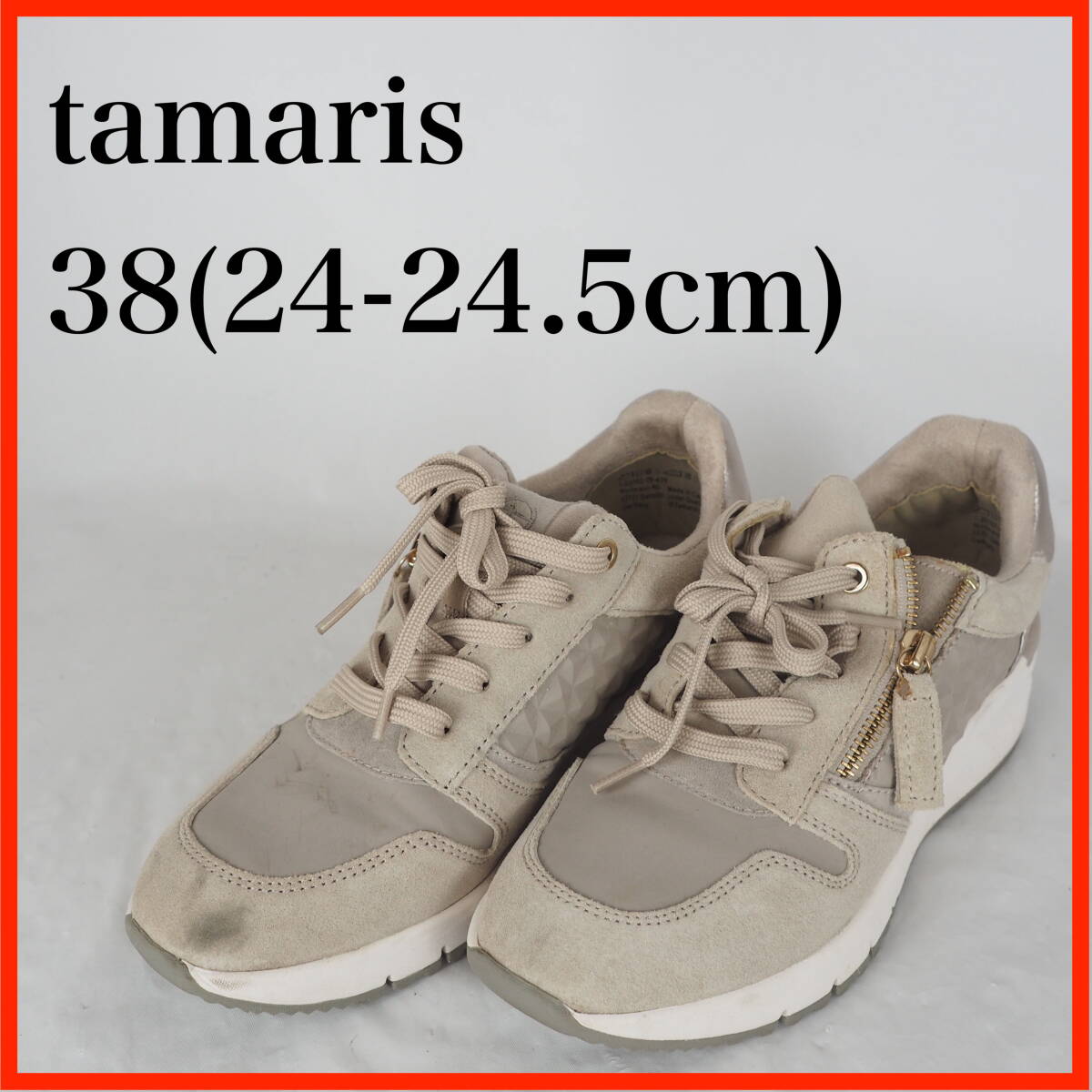 - OK5961*tamaris*タマリス*レディースサイドジップスニーカー*38(24-24.5cm)*ベージュ
