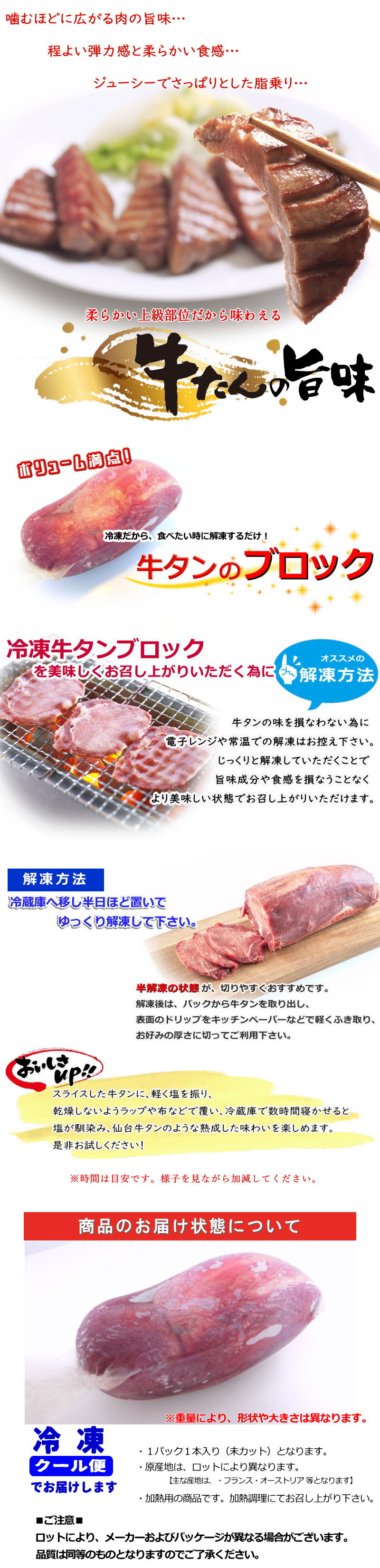 > 【Max】牛タン 丸ごと1本 やわらか牛タン 冷凍ブロック タン先無し 特大 約1kg 真空パック 冷凍 1000-1100gサイズ