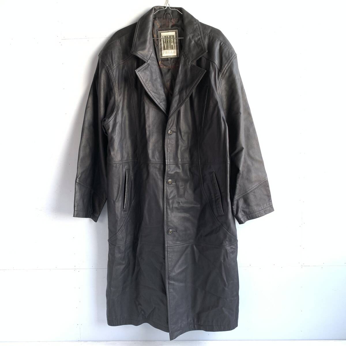 > ☆上質 高級 ビッグサイズ VIA NUOVA 羊革 シープスキン ラム レザーロングコート アウター ブラック サイズ3L 古着【送料一律/同梱可能】J