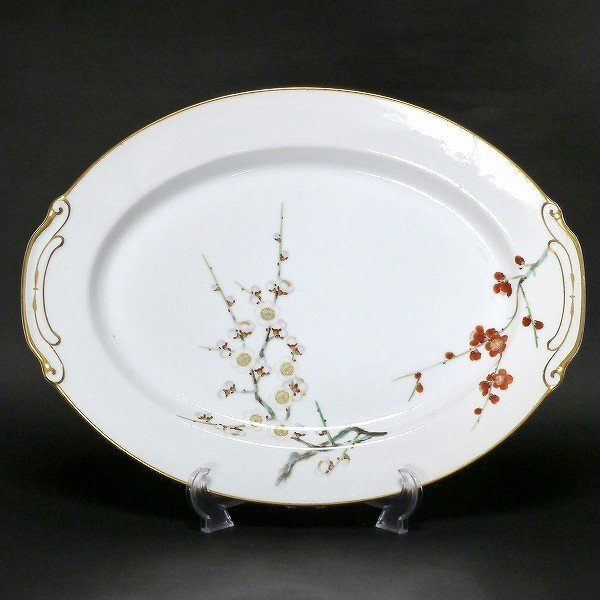 > H47【ALBION】 ヴィンテージ 金彩縁 梅文様 プレート 大皿