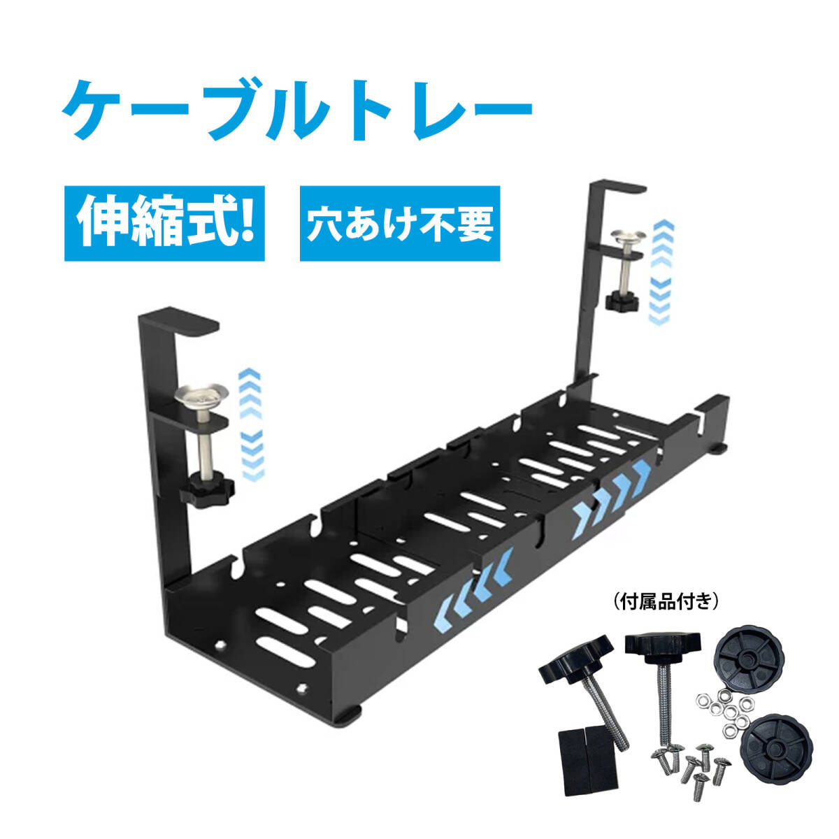 - 配線隠し デスク下 収納 ケーブルトレー ケーブルオーガナイザー 免打孔 伸縮式 デスク下収納ラック ケーブル収納バスケット ;J7235;