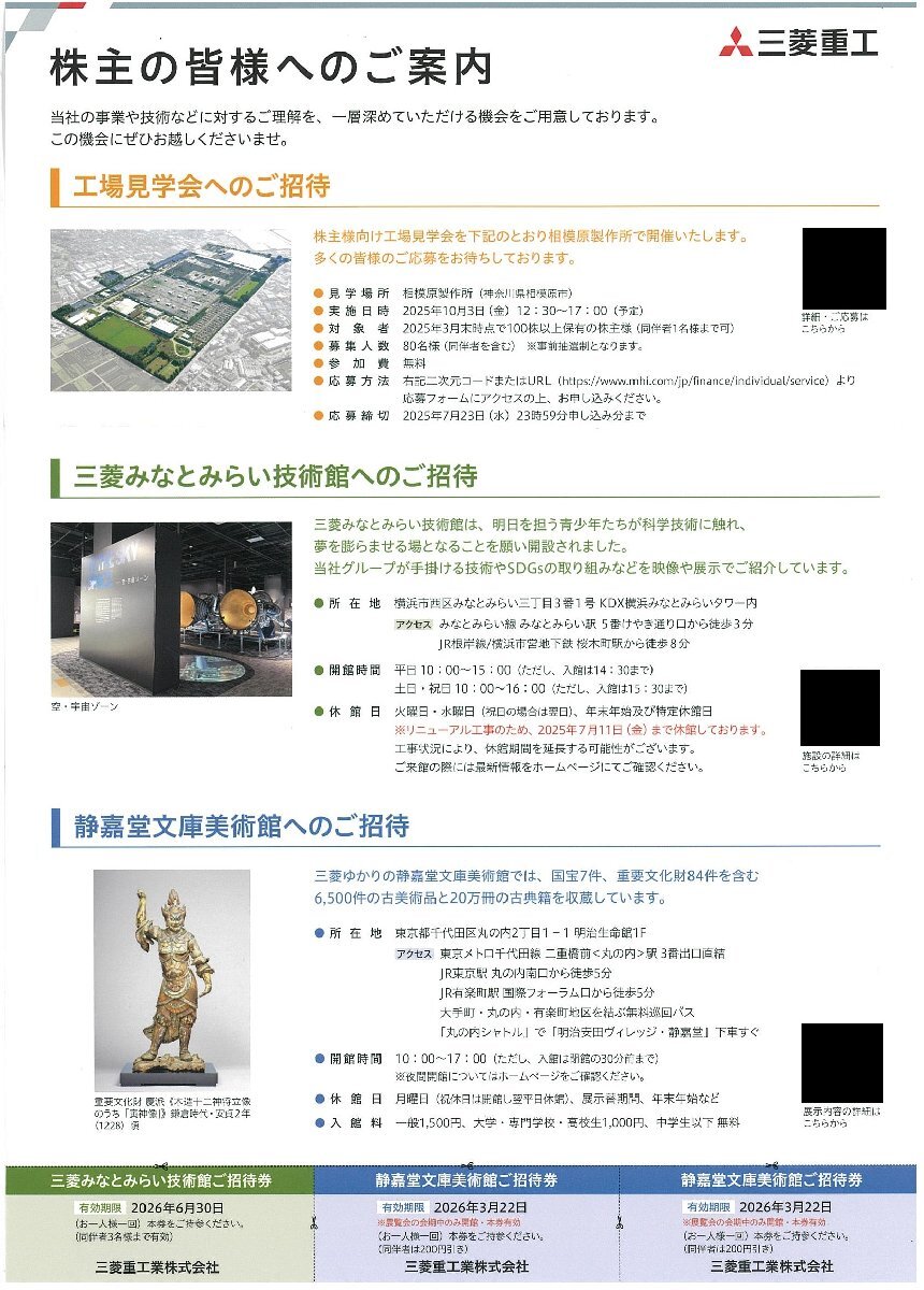 - 甲南☆三菱重工☆三菱みなとみらい技術館ご招待券×1枚+静嘉堂文庫美術館ご招待券×2枚☆2026.3.22 / 2026.6.30【管理4127】
