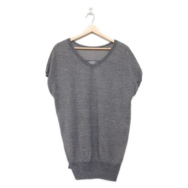 > レリアン Leilian チュニック サイズ9 M - グレー×ダークグレー レディース Vネック/半袖/ラメ/異素材切替 美品 ワンピース